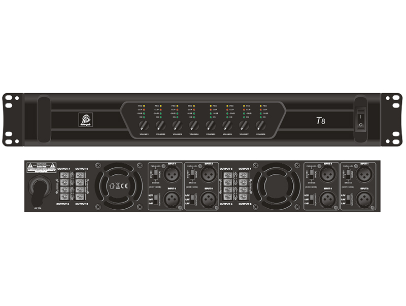 技術(shù)參數(shù) 立體聲模式:200W×8/8Ω,300 W×8/4Ω; 橋接模式:600W×4/8Ω; 線路類型:Class D; 總諧波失真:<0.01%@8Ω 1KHz; 信噪比:>103dB; 輸入靈...